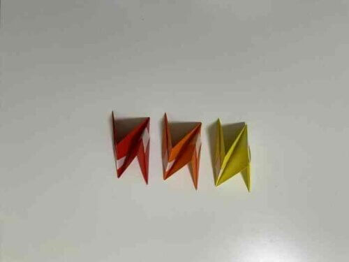 12枚の折り紙を用意してください。異なる色を3色(4枚ずつ)準備するといいでしょう。
