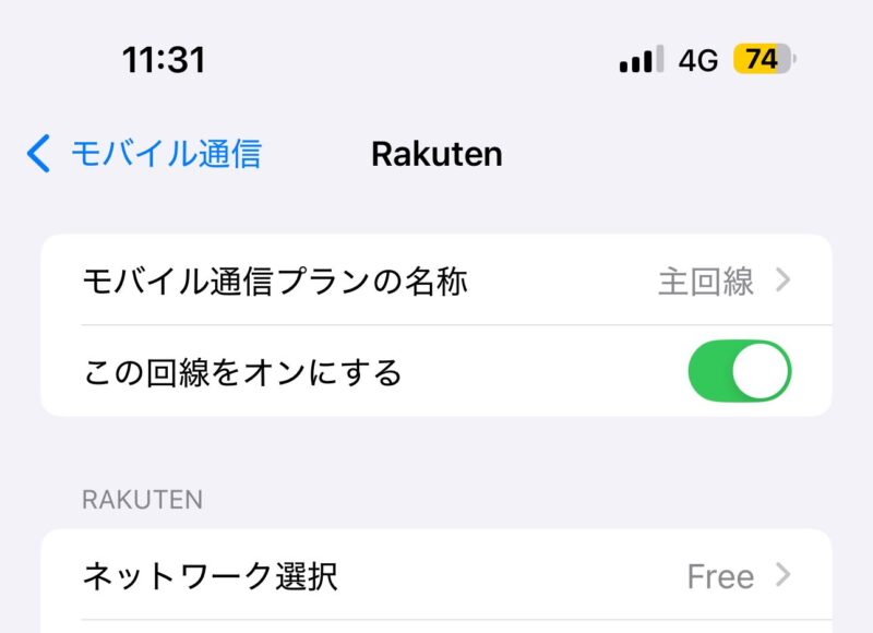 すると以下のような画面が現れますので、ご自分の電話番号が書かれているもの「主回線」をタップしてください。主回線のオレンジの部分に電話番号が書いてあります。私はいろいろなeSIMを使っているので、いろいろ現れますが、通常は主回線のみです。