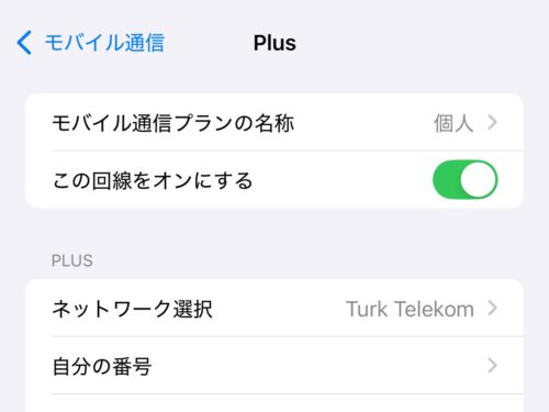 ここで、日本で使っているキャリアの主回線から新しく追加したTORA の eSIMを選択してください。
